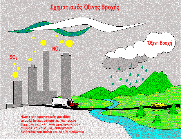 Όξινη βροχή : βροχή που περιέχει σε μεγάλη ποσότητα οξέα, τα οποία βρίσκονται στην ατμόσφαιρα σε αέρια μορφή