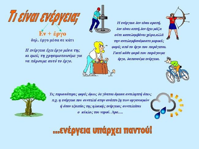 Ενέργεια λοιπόν είναι η αιτία για την αλλαγή της φυσικής ή της κινητικής κατάστασης των σωμάτων.