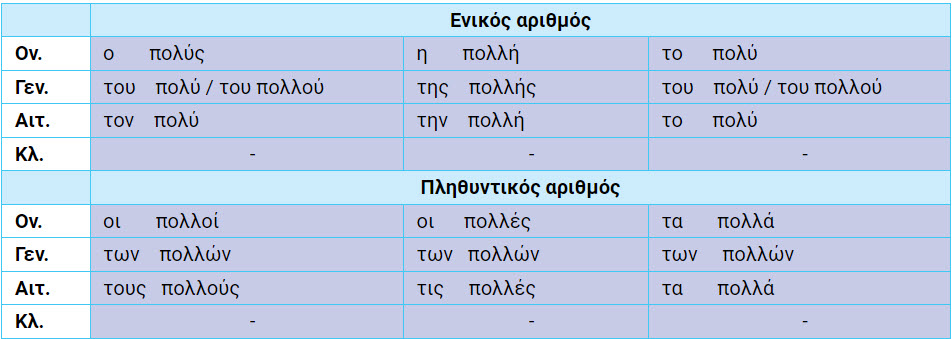 Το επίθετο πολύς - πολλή - πολύ