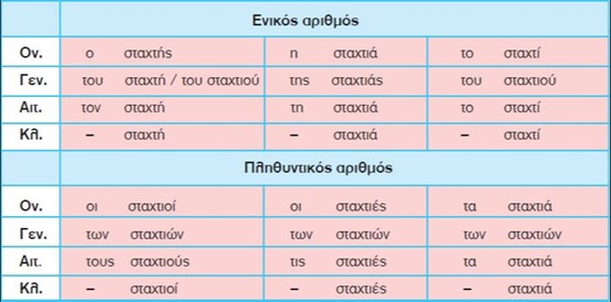 - αντωνυμία (π.χ. εκείνος, κάποιος).