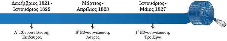 Η Α΄ Εθνοσυνέλευση συγκλήθηκε τον Δεκέμβριο του 1821 στην Επίδαυρο με τη συμμετοχή αντιπροσώπων από τις επαναστατημένες περιοχές.