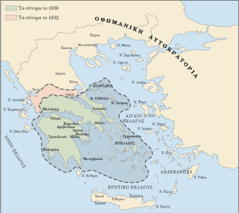 Δυο χρόνια αργότερα, το 1832, τα σύνορα του ελληνικού κράτους διευρύνθηκαν στη γραμμή Αμβρακικού κόλπου – Παγασητικού κόλπου.